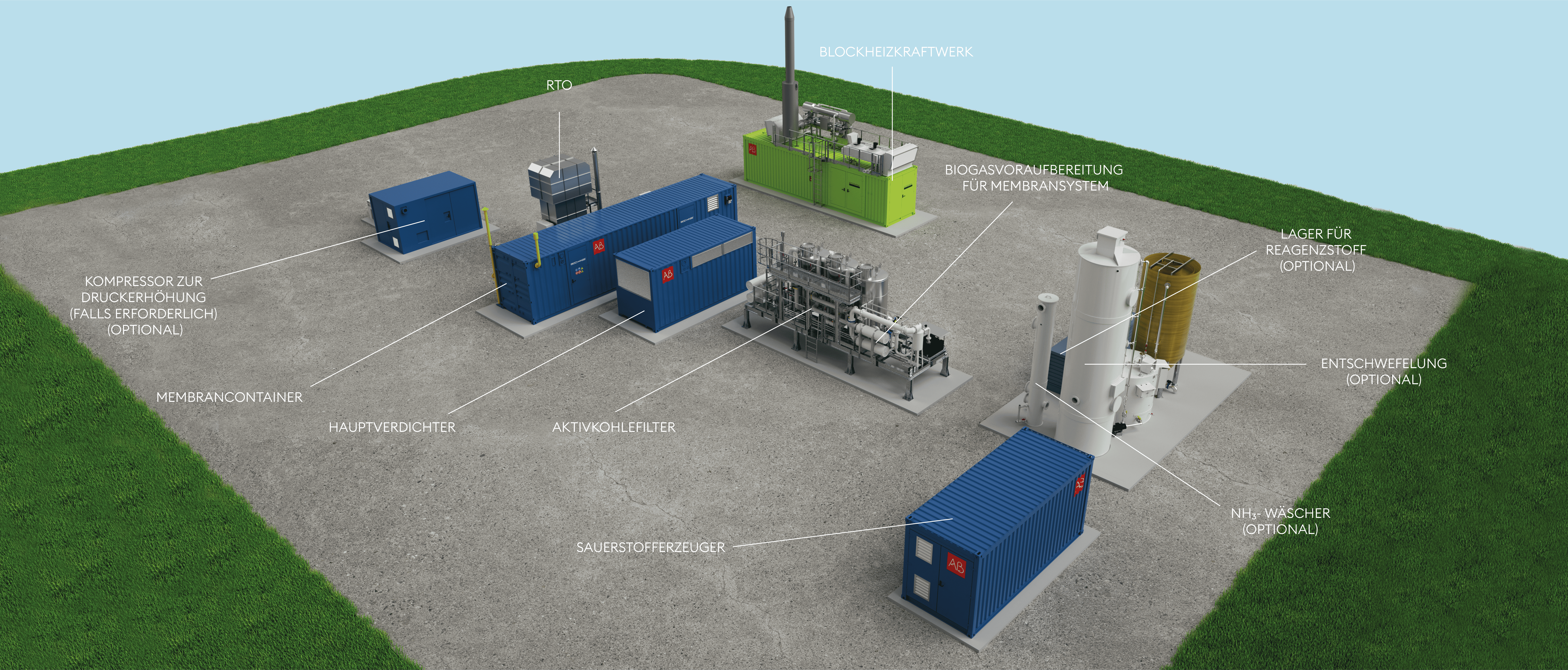 BIOCH4NGE® wird durch eine Reihe von Optionen für die Einspeisung und weiteres Zubehör für den Betrieb der Anlage ergänzt.