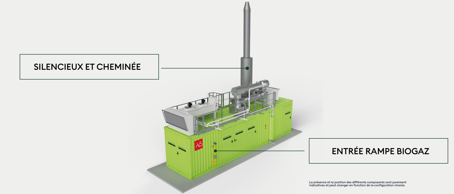 Une installation ECOMAX® alimentée au biogaz est constitué de deux parties : la partie de digestion anaérobie où a lieu la production effective de biogaz et la partie de transformation du biogaz en énergie, à savoir l'installation de cogénération.