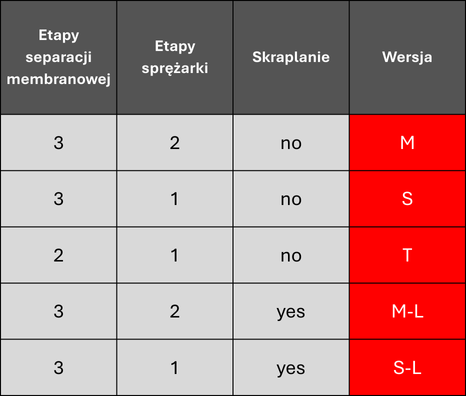 BIOCH4NGE® jest dostępny w standardowych rozmiarach obejmujących szeroki zakres przepływu wchodzącego biogazu, od 50 do 5 000 Nm³/h, i może być zintegrowany z modułami dedykowanymi do skraplania biometanu oraz zagospodarowania CO₂. Istnieje również możliwość opracowania konfiguracji niestandardowych, aby sprostać specyficznym wymaganiom instalacji.